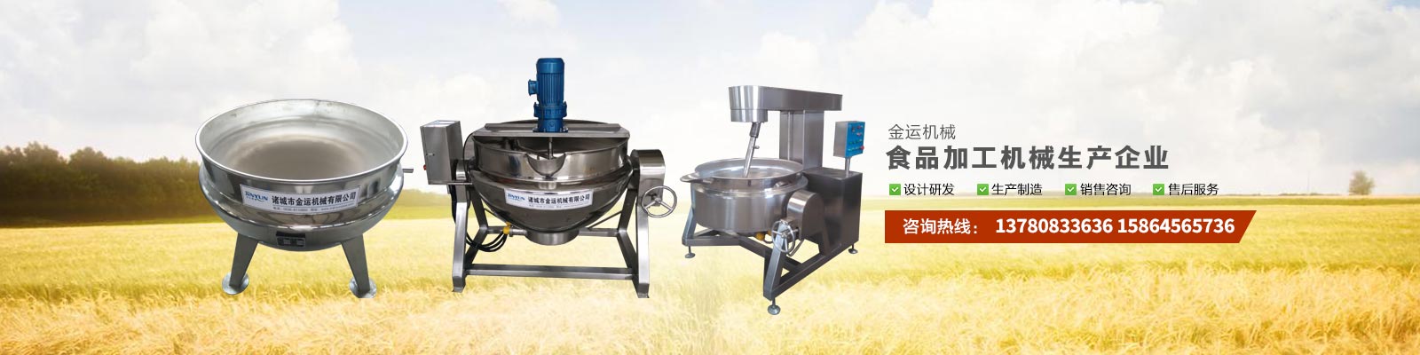 主要產(chǎn)品有:行星攪拌夾層鍋、夾層鍋、壓力煮鍋、各種餡料炒鍋、殺菌鍋(殺菌釜)、巴氏殺菌機(jī)、清洗流水線(xiàn)、風(fēng)干線(xiàn)、真空包裝機(jī)、滾揉機(jī)、斬拌機(jī)、鹽水注射機(jī)、大蒜脫皮機(jī)、大蒜分瓣機(jī)等,廣泛應(yīng)用于各種食品加工、食品殺菌及農(nóng)產(chǎn)品深加工、化工、醫(yī)藥的生產(chǎn)等??蓾M(mǎn)足外資企業(yè)、合資企業(yè)及國(guó)內(nèi)大中小企業(yè)生產(chǎn)需求,產(chǎn)品暢銷(xiāo)全國(guó)各地。